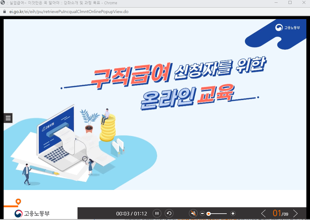 2. 고용보험 사이트 : 수급자격신청자 온라인교육 수강