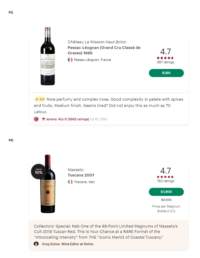 레드와인 추천 : 비비노 평점 top 1위 ~5위