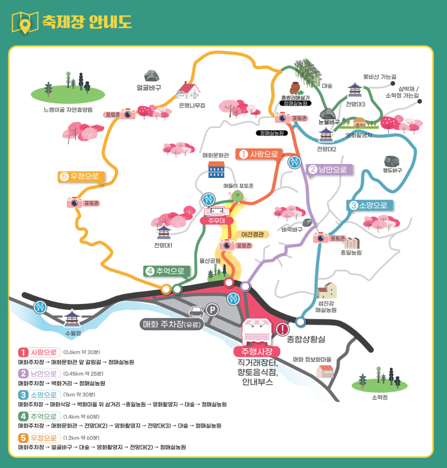광양매화축제는 따뜻한 도시 광양에서 열리는 아름다운 꽃 축제로 매화의 개화를 기념하기 위해 광양시에서 매년 열리는 축제입니다. 축제는 보통 매화가 만개한 2월 말에서 3월 초에 열리게 됩니다. (연도별 상이)