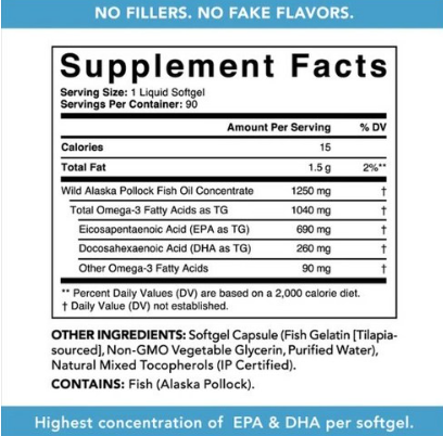 - 셋째. 해당 원료사의 제품 중에서도 1 캡슐당 들어있는 오메가 3의 순도가 어느정도인가 확인하기. 순도 60% 짜리와 80% 짜리는 가격이 확연히 차이날 정도입니다. 그러니 더욱 면밀히 확인 후 높은 순도의 오메가 3을 골라야 우리몸에 불필요한 기름을 줄일 수가 있습니다.