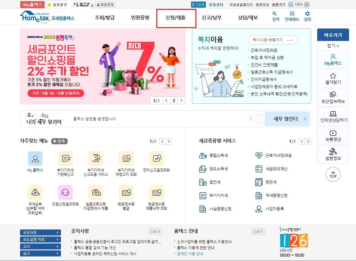 1. 국세청 홈택스 접속