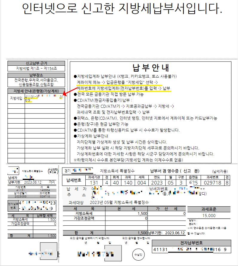 저는 지방세 계좌를 통해 가상계좌 입금을 선택했고 빠르게 입금하고 끝냈습니다.