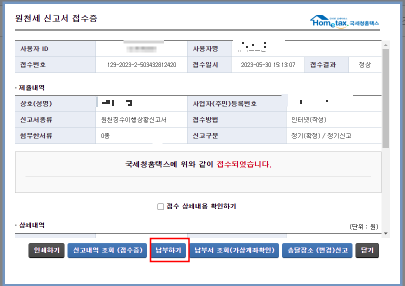 해당 내역이 맞는지 다시 한 번 점검 후 최종적으로 신고서를 제출하게 됩니다.