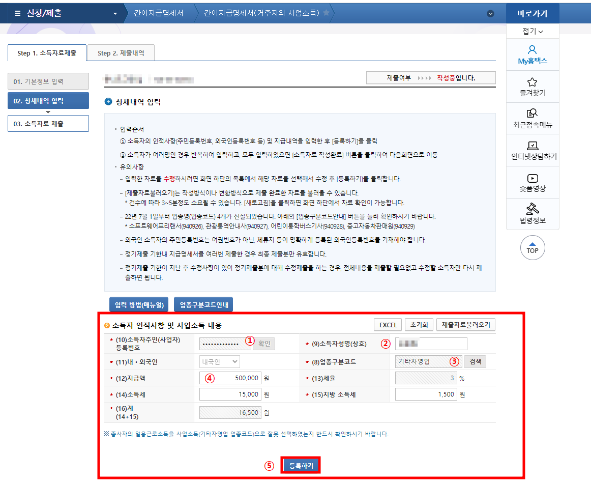 5. 간이지급명세서 작성하기 : 소득자료 제출하기