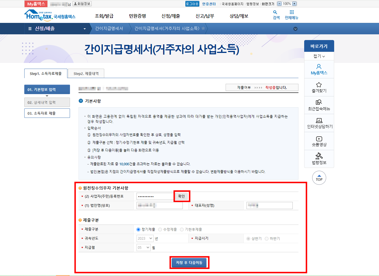 2. 간이지급명세서 작성하기 : 기본정보 입력